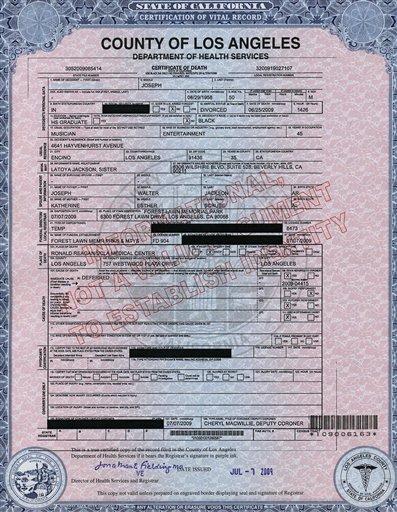 4) Michael Jackson’s death Certificate.