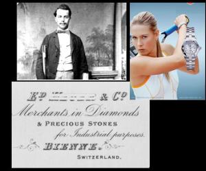Identify the brand name with the image of the founder and the ad of its first store.
