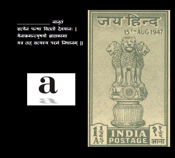 The Lion Capital of Asoka( adorns the second stamp produced in independent India(not necessary),ie national emblem of india,which adorns satyameva jayate .fill in the blanks is सत्यमेव जयते from mundaka upanishad.third one is Aamir Khan Productions,produced satyameva jayate reality show