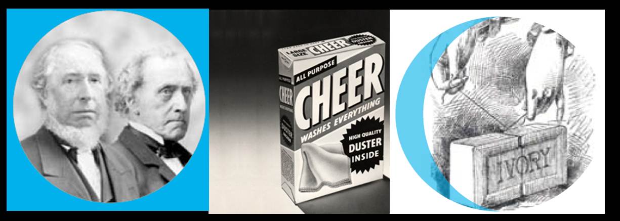 7. Procter & Gamble. The first image is of William Procter and James Gamble. Ivory is a floating soap brand. And Cheer is a detergent